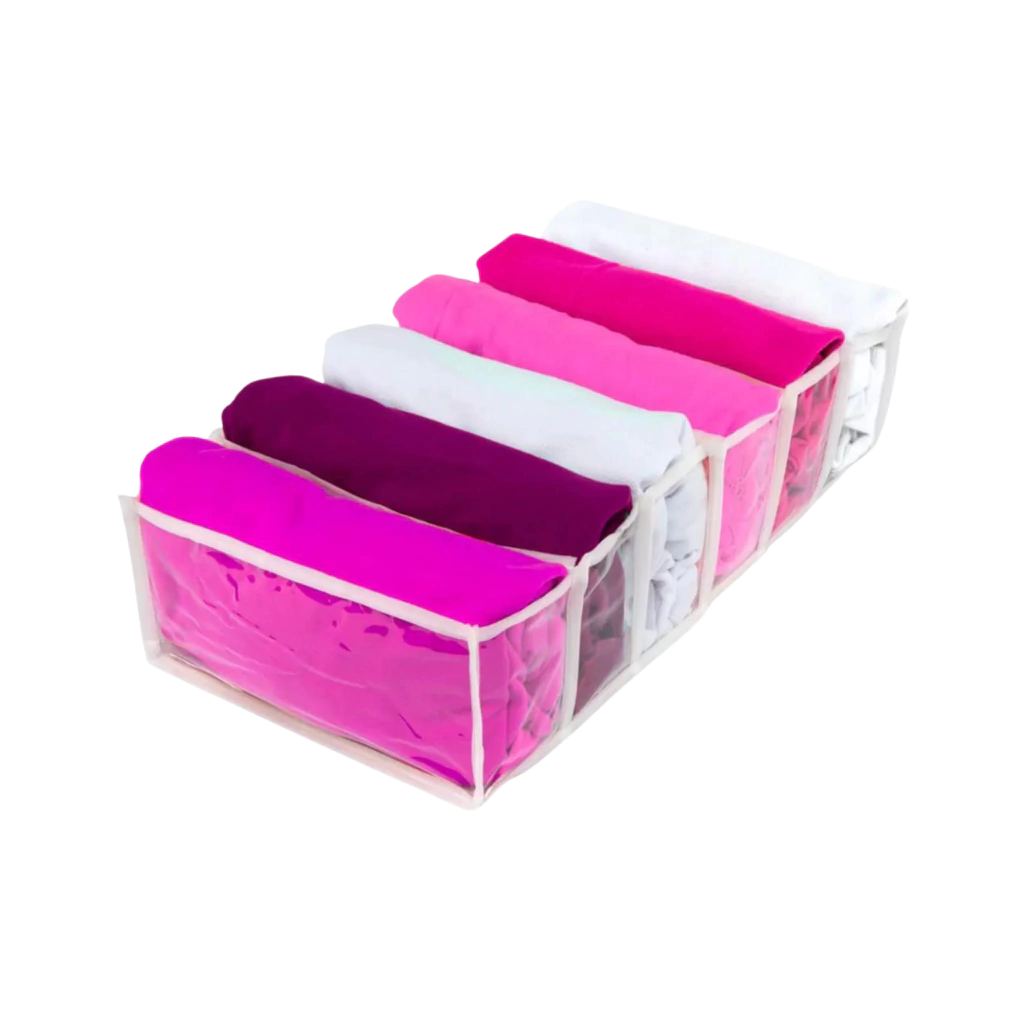 Confeccionada em plástico cristal, com acabamento em gorgurão, um produto ressistente e perfeito para manter as gavetas organizadas. A colmeia M c/ 6 nichos, é ideal para panos de prato, pijamas, toalhas de rosto, panos de limpeza, leggings, camisetas.